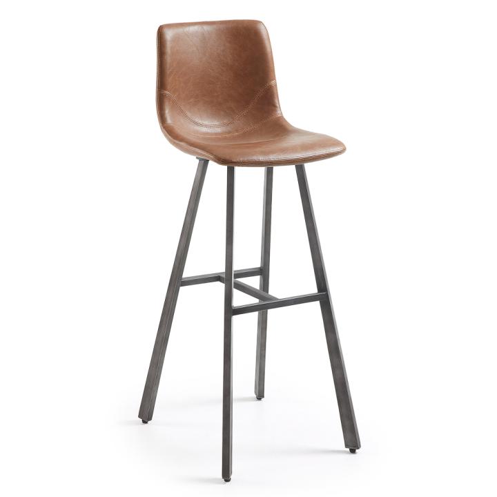 Barstool upholstered in synthetic leather. Powder coated steel legs.