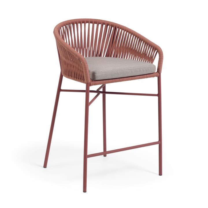 For meals indoors or al fresco, the Yanet stool adds a laid-back look to any space thanks to its hand-woven cord seat in a hot terracotta shade.