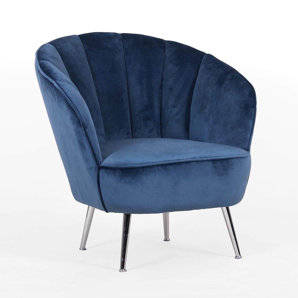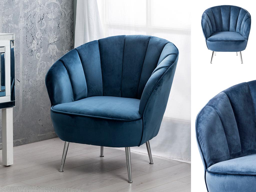 AN ARMCHAIR 76X76X79 CM. BLUE VELVET CHROME LEGS