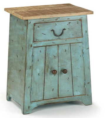 50x66 unique bedside cabinet in turquoise wood with natural wood top ***IN STOCK***