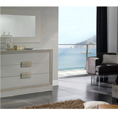 Matching item to the M-127 bedside cabinet. Satin finish available all in white, stone or vison colour with champagne inlay. Also available with plinths or legs. This unit can also be manufactured all in white (C-128) 112x45x88.5cm