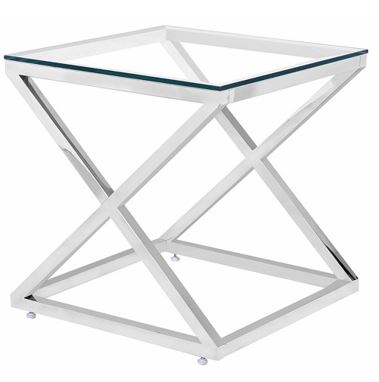 glass and stainless steel side table 60x60x60 cm legs color silver with clear glass top.