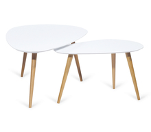 Set of 2 coffee tables with tops in WHITE lacquered MDF and solid HAYA legs.