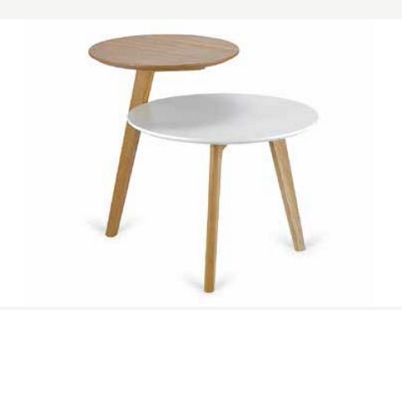 A unique side table combo complimenting much of the white and oak range. This bicolor 2 circular table can be used as a sofa side table or would make an ideal plant and decoration stand. 60x 55 high