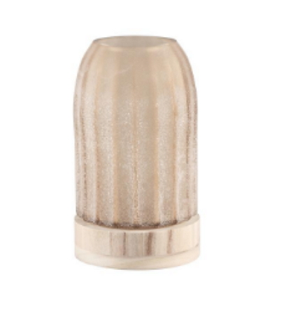 Smoked glass and wood bottom glass stormlight with stripes. 24x12.5x12.5cm