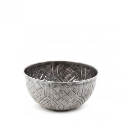 Ceramic effect metal bowl in painted gloss grey. 26x26x12 large