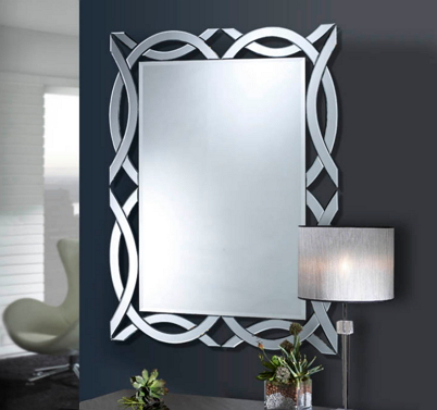 Bevelled central mirror with bevellled pieces as a frame in a curved design. Ready to hang in a horizontal or vertical position. 120x87cm