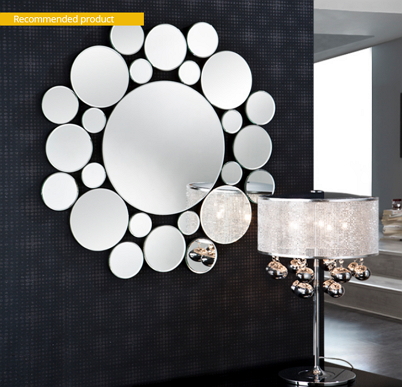 Central circular bevelled mirror with smaller bevelled mirrors creating a frame. 80cm in diametre