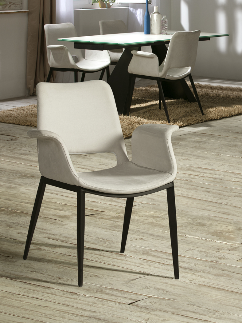 Armchair made of metal, matt black finish. Back and seat of plywood and foam.