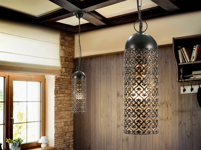 Punched metal ceiling pendant light 44cm high with an adjustable installation height of 65-120cm Black on the outside gold on the inside
