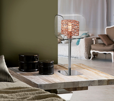 Single light with led lamp made of metal with chrome finish. Molded glass shade with inner cubic frame made in copper wire. matching ceiling light, pendant light, wall light also available.