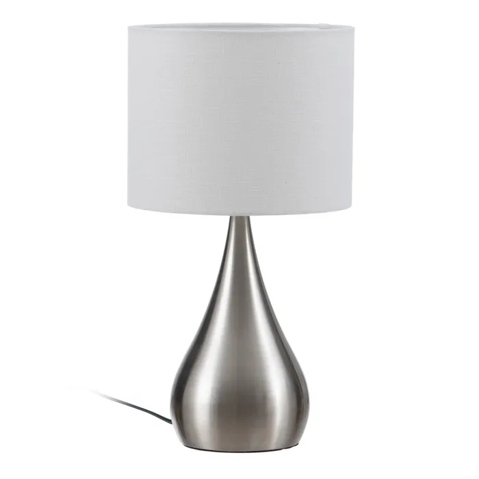 Material: iron Lampshade: white linen Lampshade measure: Base measure: Voltage: 220v Bulb: 1 max. 40w Bulb not included Cable length: 150cm. Black wire.