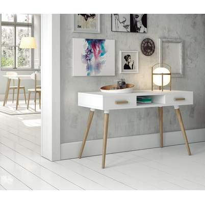 desk with two drawers in white. Oak wood legs. 120x45x75cm