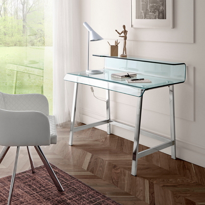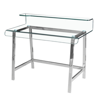 12mm tempered glass desk with stainless steel legs in chrome. 110 x 56 x 90cm