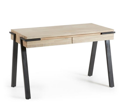 Natural Acacia tropical wood and metal desk with two drawers 125x60cm