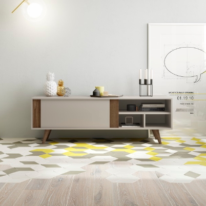 Laquered matt white unit combined with natural wood and natural wood legs. Nordic Style. 195 x 47 x 54.5 cm